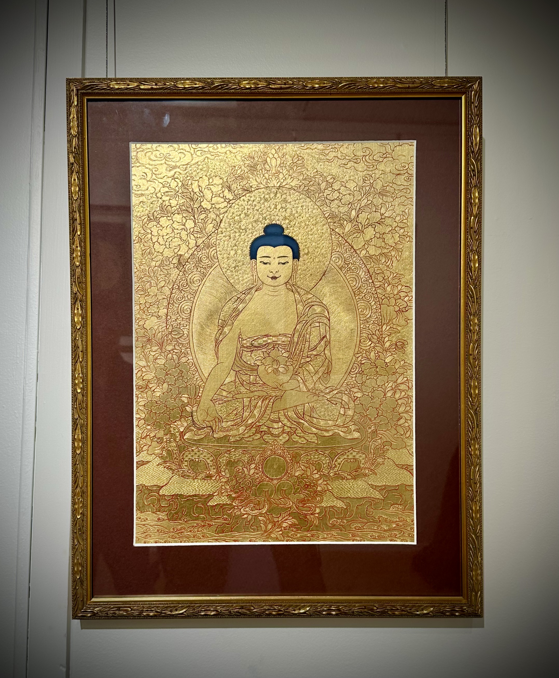Unlike traditional thangkas, golden thangkas are created entirely using gold pigment, with details meticulously engraved and polished using agate-tipped tools. This distinctive method imparts a unique blend of opulence and subtlety to each piece.